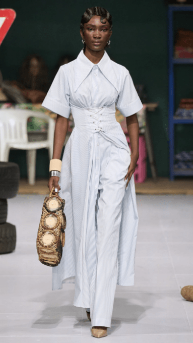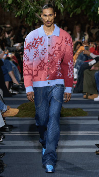 This is another new-to-me designer that I really enjoyed. I’m only including one look here but the show is worth a look. There is so much joy in the clothing. The colors and patterns are vibrant, the styling is very cool and fresh. I appreciated the aliveness of it all.